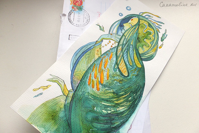 Удивительно, но мне самой уже пришла первая открытка от моей тезки Катерины opossum_art. Почта России не безнадежна:)