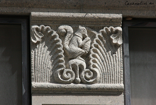 Просто адская белка на одном из домов. Точит шишку, выбирает жертву. Мне кажется или у нее вместо морды клюв?