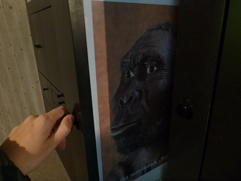 Была классная штука в виде короба с дырками для головы. Подходишь, засовываешь голову, а внутри темнота и на экранах вокруг что-то про жизнь неандертальцев рассказывают. К сожалению я ее не сфотографировала, но вот этом ролике можно на нее посмотреть на 1:15