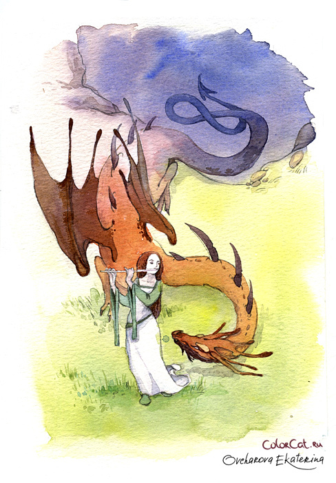 Силу до сих пор люблю. Классно они сплелись. И то, что девушка играя на флейте укрощает дракона, мне кажется очень правильным.
