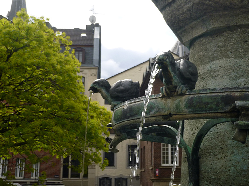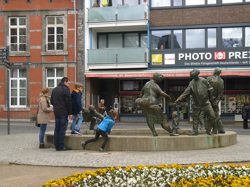 В Аахене много скульптур и все они очень тактильные. Всегда много деталей, легко дотянуться и пощупать. Часто эти скульптуры совмещены с фонтанами. Например фонтан Кукол, которые можно крутить как нравится.
